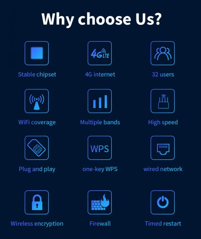 High Gain Antennas with 4 x 5dBi ,high sensitivity of the router to receive long distance and high quality of 4G LTE