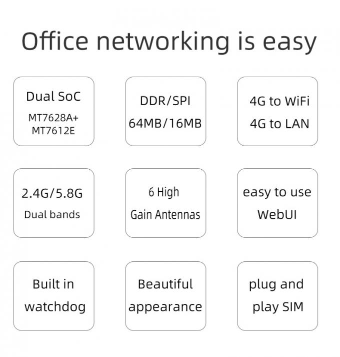 High Gain Antennas with 6 x 5dBi ,high sensitivity of the router to receive long distance and high quality of 4G LTE, dual